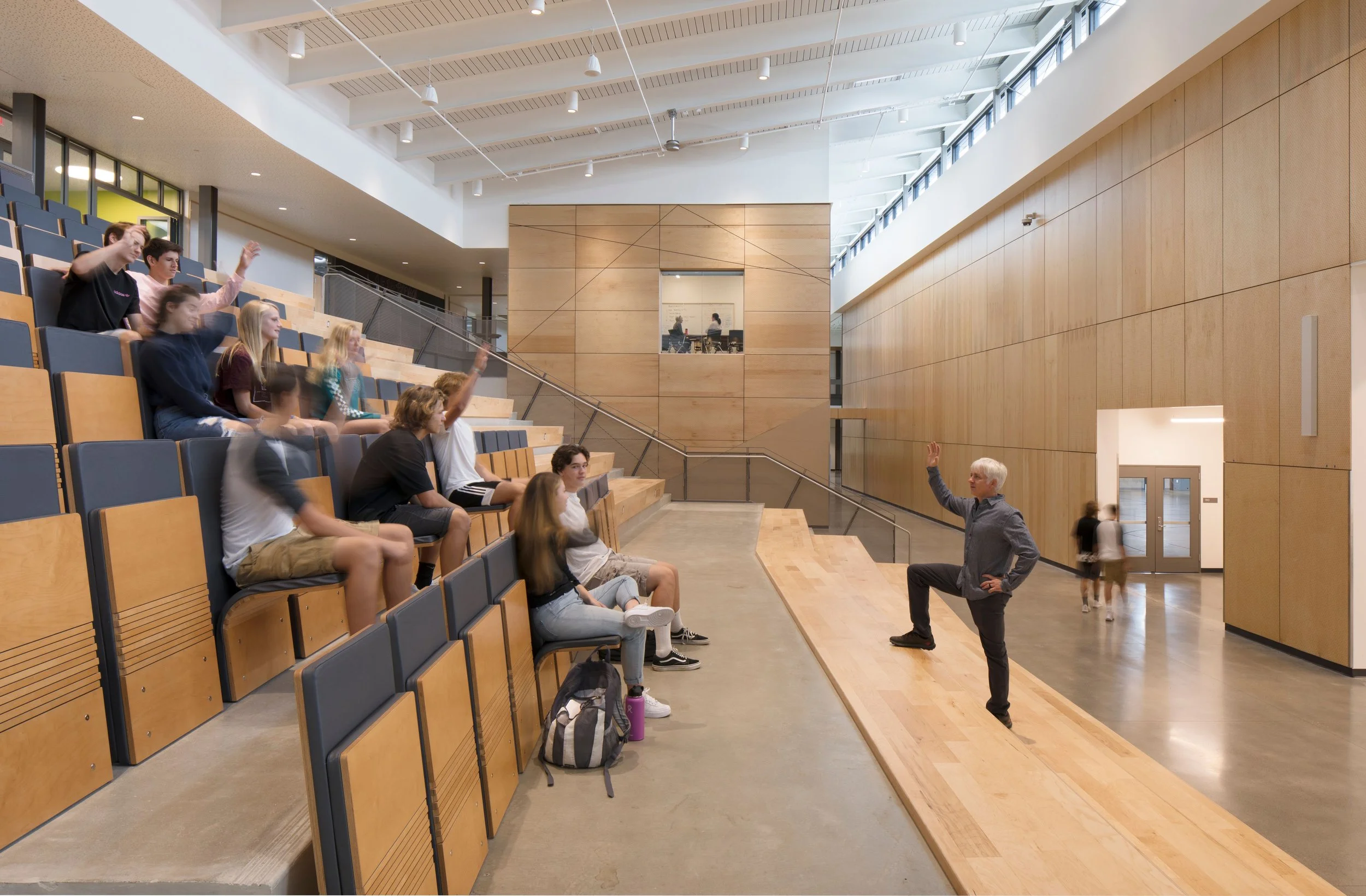 “I looked around for auditorium seating and there was nothing out there that really fit the footprint,” Vossoughi recalled. “We have a creative company here in Portland. I knew we couldn’t just sit on the concrete. It’s still true that necessity is the mother of invention. So I sketched a design for a very thin profile auditorium chair with a seat that cantilevers when in use and snugly retracts when unoccupied.”