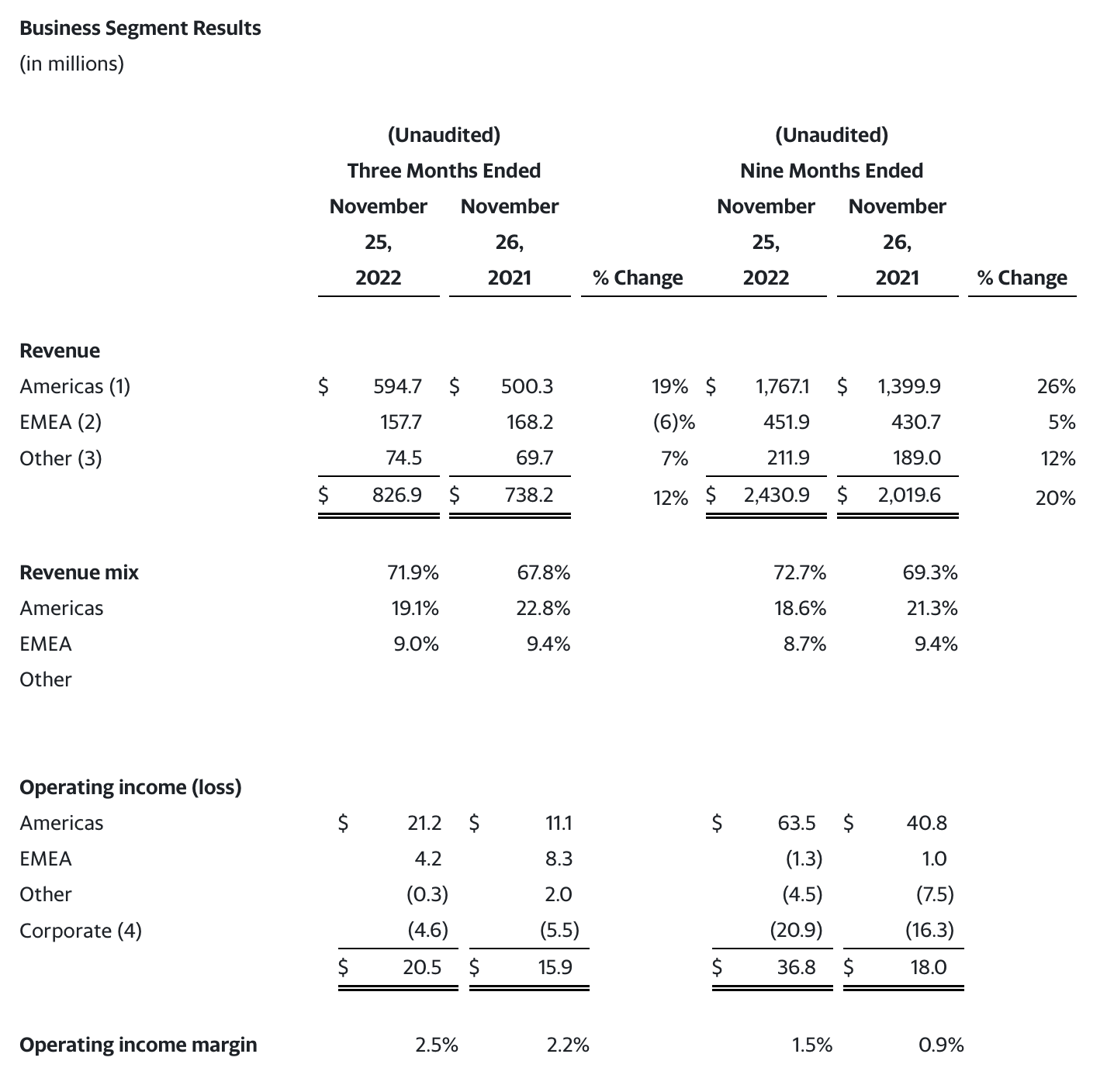 "Our gross margin improvement in the Americas this quarter reflected the benefits from the pricing actions we've been implementing in the face of extraordinary inflation levels," said Dave Sylvester, senior vice president and CFO. "On a global basis, year-over-year pricing benefits have exceeded year-over-year inflation for the last two quarters; however, we estimate cumulative inflation over the last seven quarters exceeds the cumulative benefits from our pricing actions by approximately $60 million. Moving into the fourth quarter and first half of fiscal 2024, we expect continued year-over-year gross margin benefits from our pricing actions, as we aim to recover the cumulative impact of inflation."
